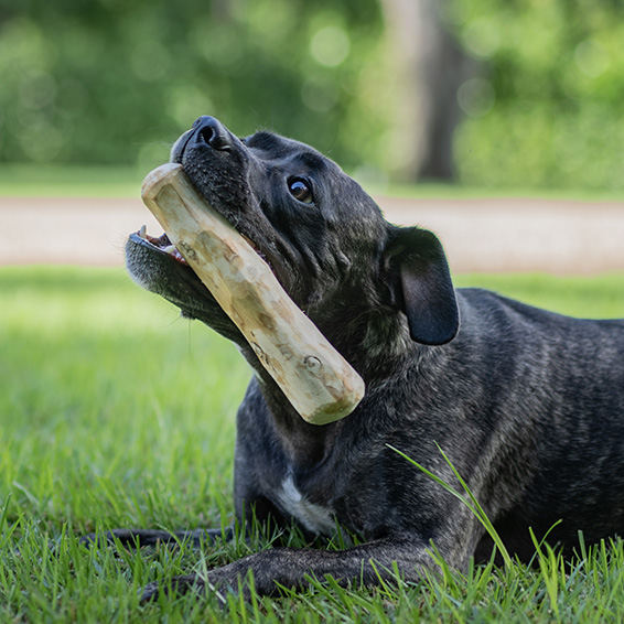 entertained while satisfying their innate need to chew. Chewing is an instinct of all dogs, no matter the breed, size or age. For dogs, the act of chewing releases naturally occurring hormones, called endorphins, which relax your dog. When dogs chew on a Bestie Dog Chew, the coffee wood also promotes oral health by acting as a natural toothbrush and floss, eliminating bacterial plaque with a completely safe and natural product. Coffee wood also contains cellulose, an insoluble fiber which aids in the natural digestive process.